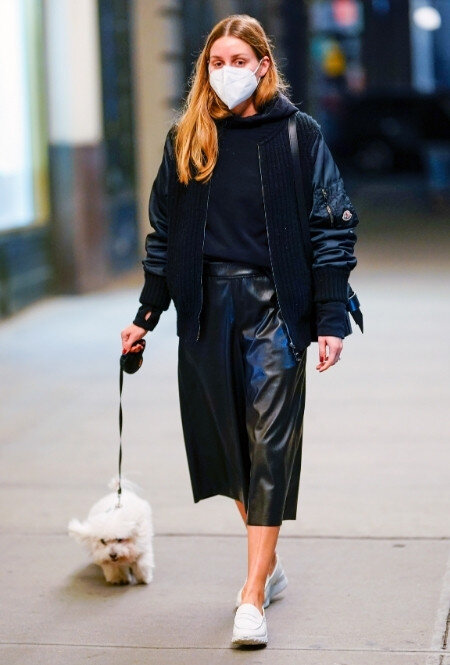 В период демисезона Оливия и ее возлюбленный побывали в мини-путешествии в любимой Венеции, где наслаждались последними теплыми днями и романтичной атмосферой одного из самых туристических городов Италии. По приезде домой в Нью-Йорк знаменитость вернулась обратно в ритмы модной столицы США и уже окончательно перестроилась на осенне-зимний гардероб. Для обычных прогулок с питомцем девушка выбирает