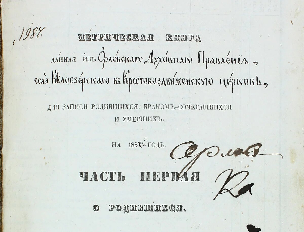 1). Метрические книги - документы культовых учреждений (церквей, синагог, мечетей и др.), которые содержат сведения о родившихся (при крещении), бракосочетавшихся, умерших. В наше время метрические книги храняться в Областных Государственных архивах (фонд духовных консисторий).