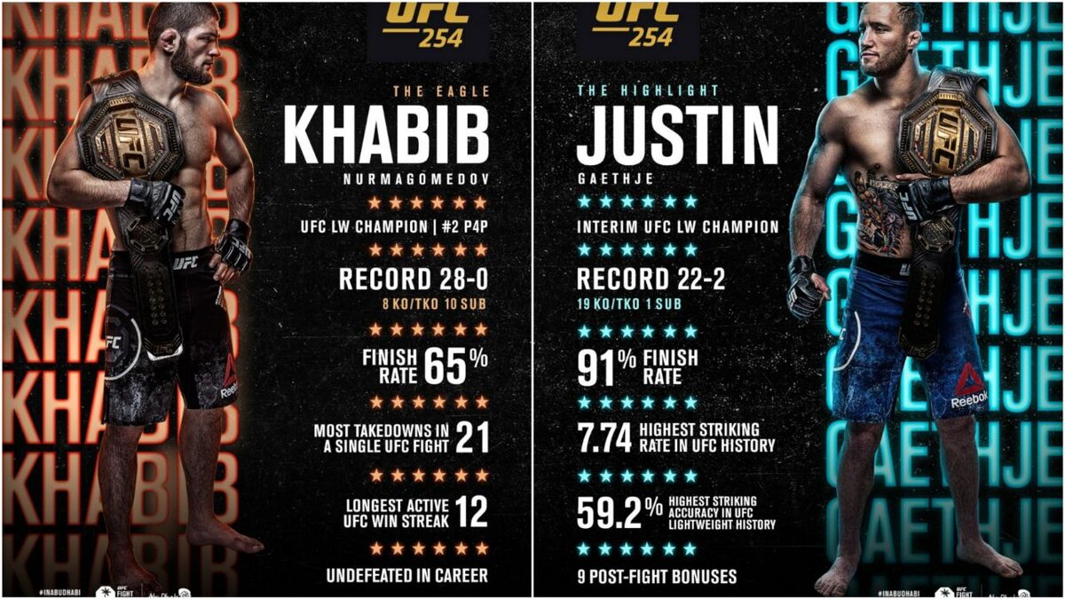 👊 Бой Хабиба Нурмагомедова против Джастина Гэтжи пройдёт уже сегодня на UFC 254!