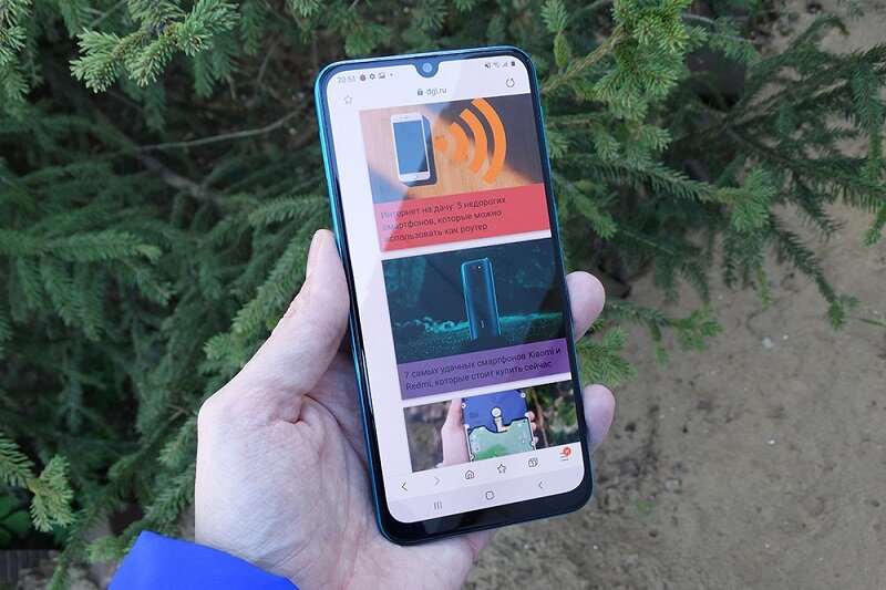 Модель весьма привлекательная по своим параметрам. Основной её особенностью является объёмная батарея на 6000 мАч. Причём девайс поддерживает быструю зарядку. Здесь поставили AMOLED-экран, но без дактилоскопического датчика, который переместился на заднюю поверхность. Там же расположена неплохая тройная камера (48/8/5 Мп). Управление возложено на уже известный процессор собственной разработки Exynos 9611. Объём памяти небольшой, но достаточный для такого аппарата: 4/64 Гб с возможностью увеличения. Есть встроенный блок NFC.
