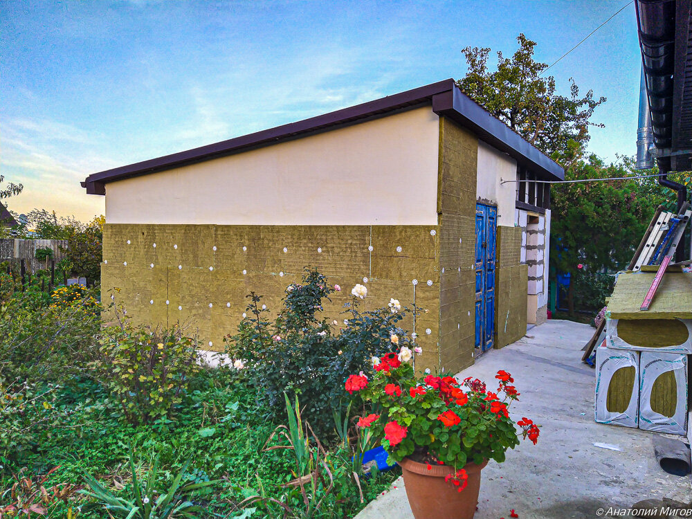 Вчера был третий день нашей спонтанной стройки. Еще неделю назад мы только проговаривали варианты и обсуждали целесообразность нашей четвертой крымской стройки. А сегодня уже далеко продвинулись. Заложили газоблоками проемы на веранде и начали утеплять стены каменной ватой.