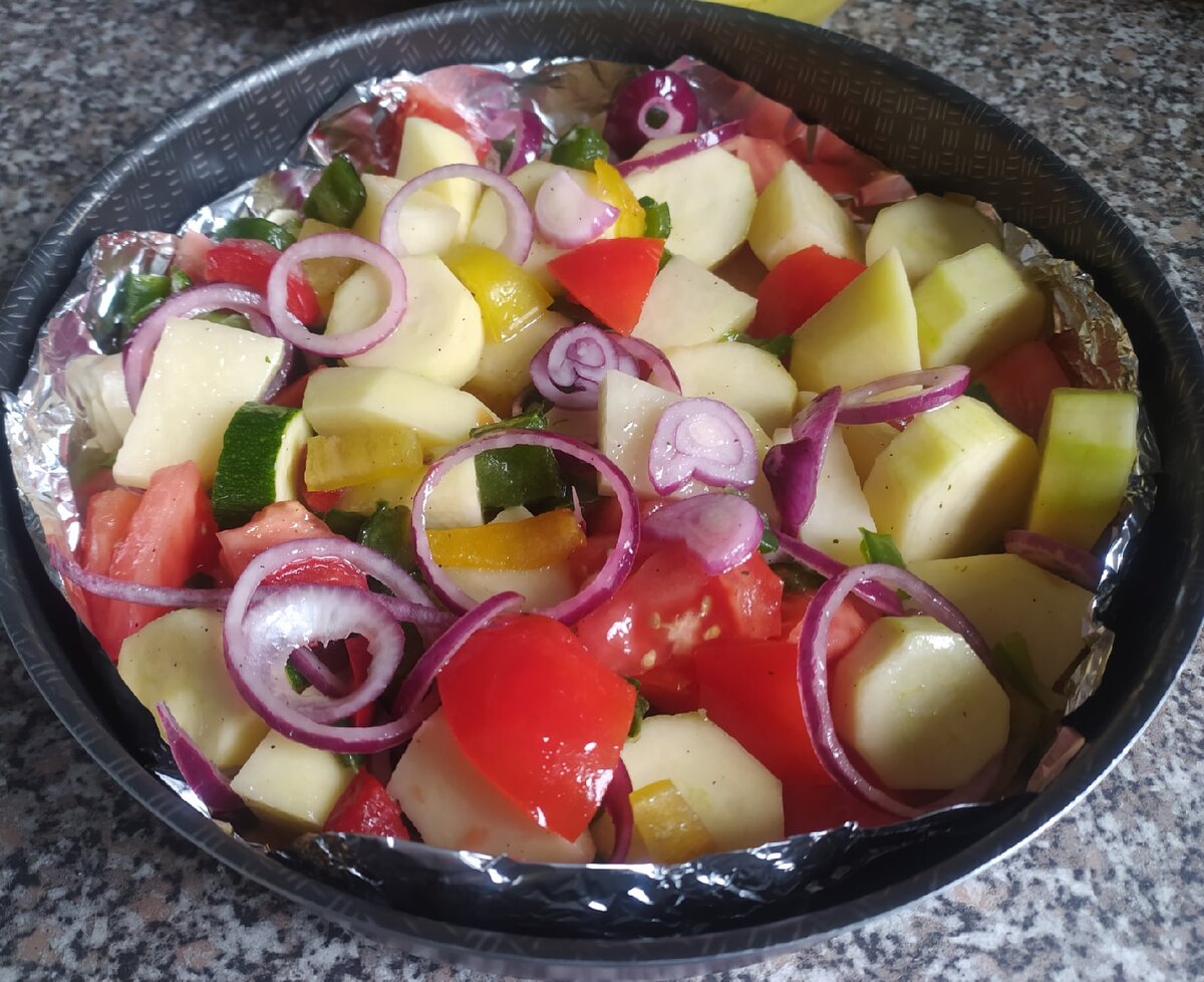 Если вам надоели рис, гречка, макароны, и вы хотите разнообразить гарнир, приготовьте вкусные, яркие и ароматные овощи в духовке! Блюдо готовится просто. Нужно лишь нарезать овощи! Всё остальное за вас сделает духовка! Овощи можно брать любые на ваш вкус! Можно добавить и грибы! Думаю, будет тоже очень вкусно!!!