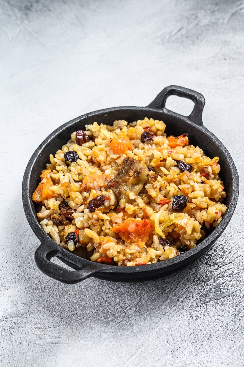 - Масло топленое или сливочное — 2 ст. ложки. Подготовим необходимые продукты для плова с шампиньонами. Можно использовать только растительное масло — блюдо получится постным и вегетарианским.