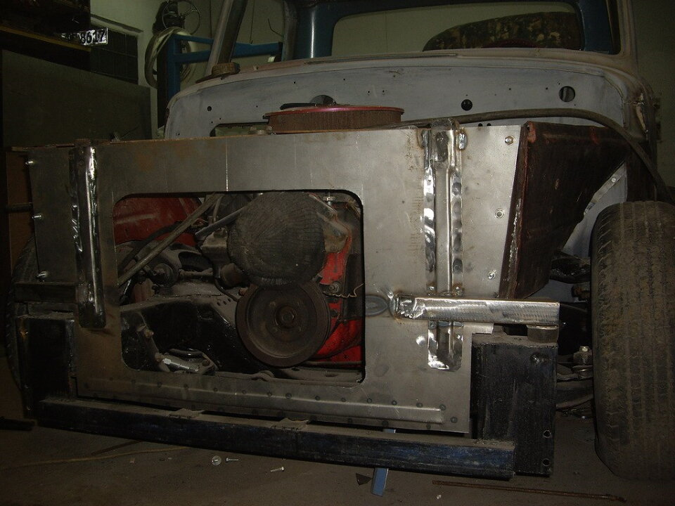 На начальном этапе работ всё выглядело не очень презентабельно. Процесс жестянки не прекращался, шел год за годом и зимой, и летом. Несколько раз был изменен дизайн задней части кузова, переделывались крылья.