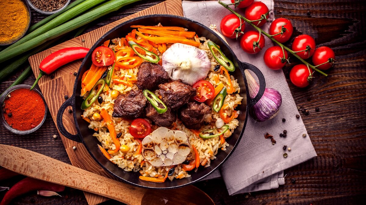В этом рецепте главное правильно выбрать мясо. Баранина должна быть яркого красного цвета с белым жиром. Если жирок желтый — мясо старое и испортит вкус плова.