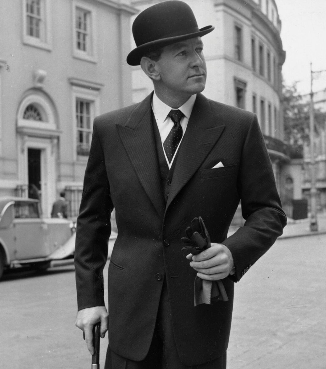 Но на многих снимках, сделанных в то время, когда он был ещё не так полон, видно, что пуговица так же растëгнута. И поэтому существует ещё одна версия: прототип современного однобортного пиджака появился в 1906 году, предназначался для повседневной носки и был достаточно свободно скроен, чтобы хозяин мог предаться традиционному занятию обычного джентльмена - верховой езде. Но нижняя пуговица прежней одежды для всадников — сюртука и редингота — находилась выше линии талии! Поэтому нижнюю пиджачную приходилось расстёгивать, усаживаясь в седло, чтобы пиджак не сложился в гармошку.