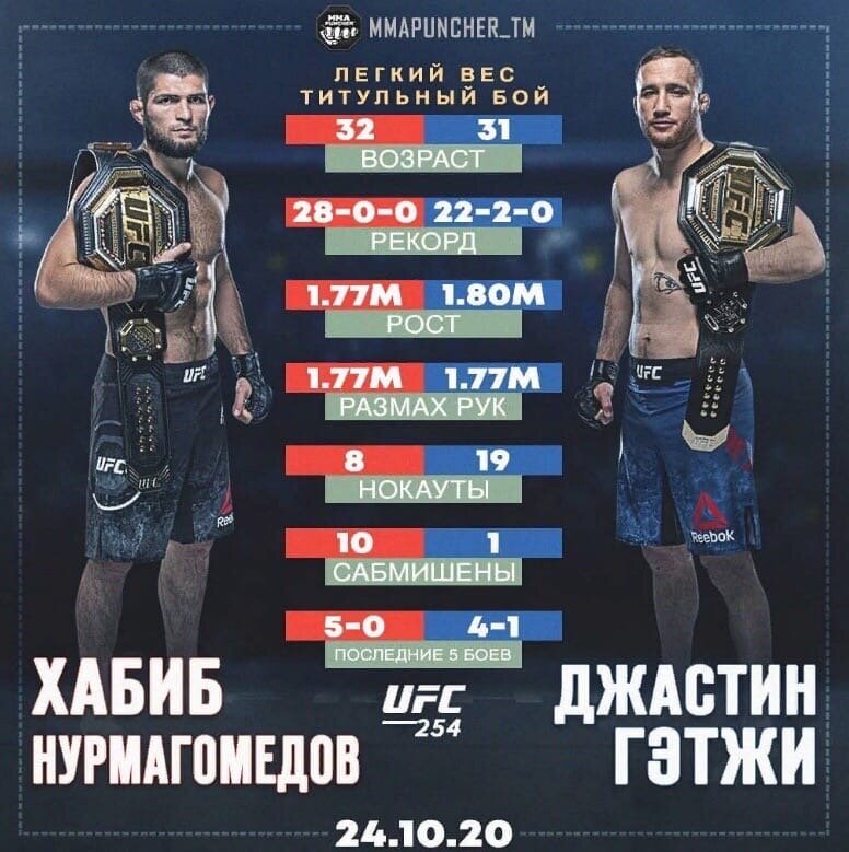 Нурмагомедов – Гэтжи. Онлайн-трансляция боя на турнире UFC 254