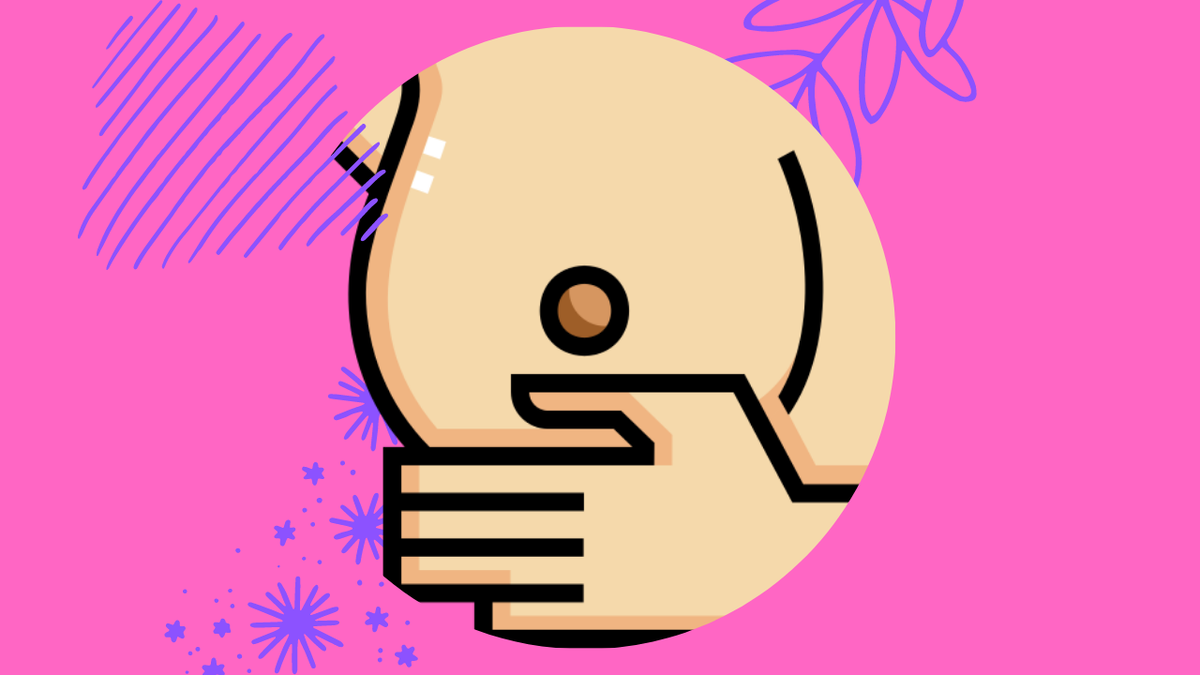 Возьмите грудь таким образом и слегка отодвиньте от себя, а затем подвигайте аккуратно, медленно в разные стороны.