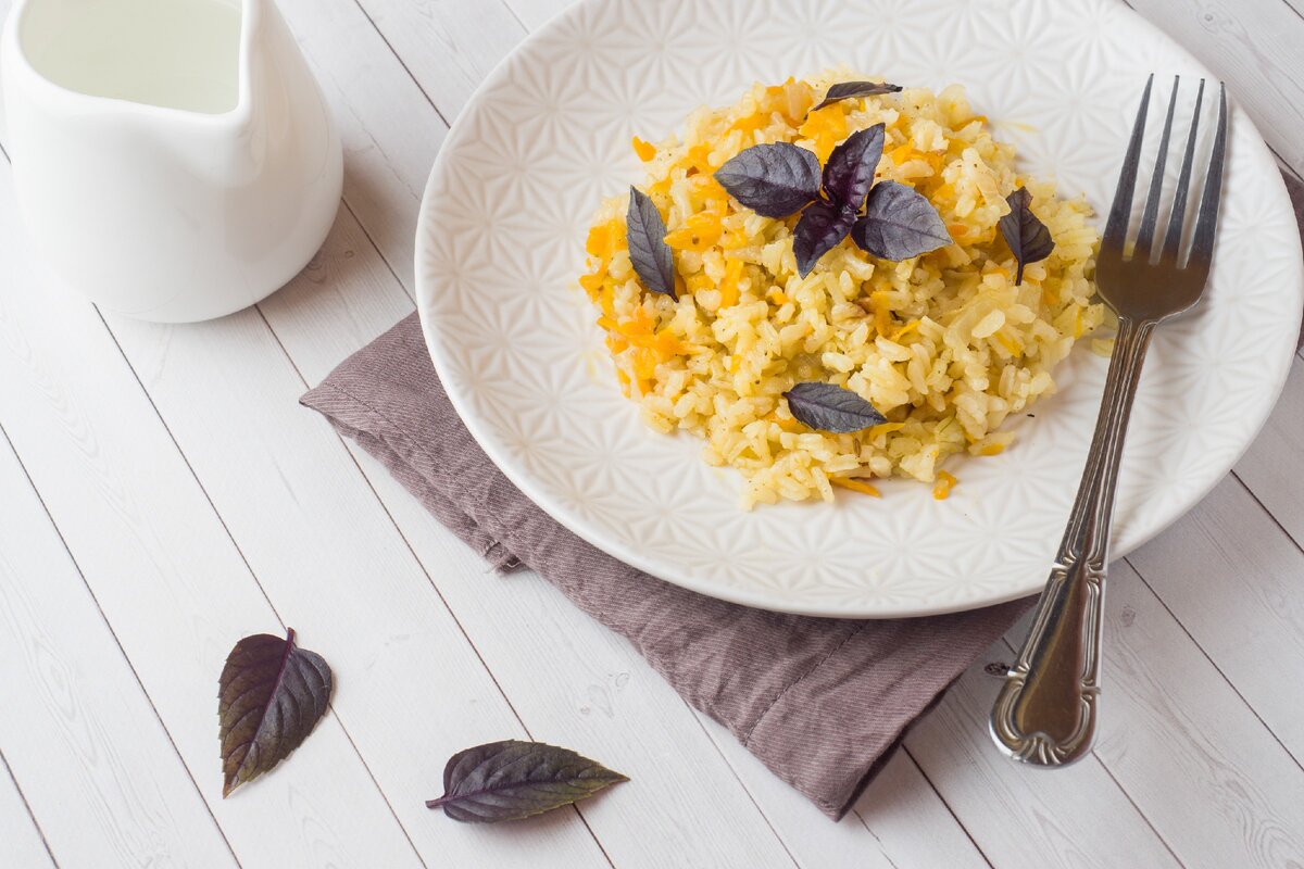 - Готовим блюдо до рассыпчатого состояния и золотистого цвета риса.