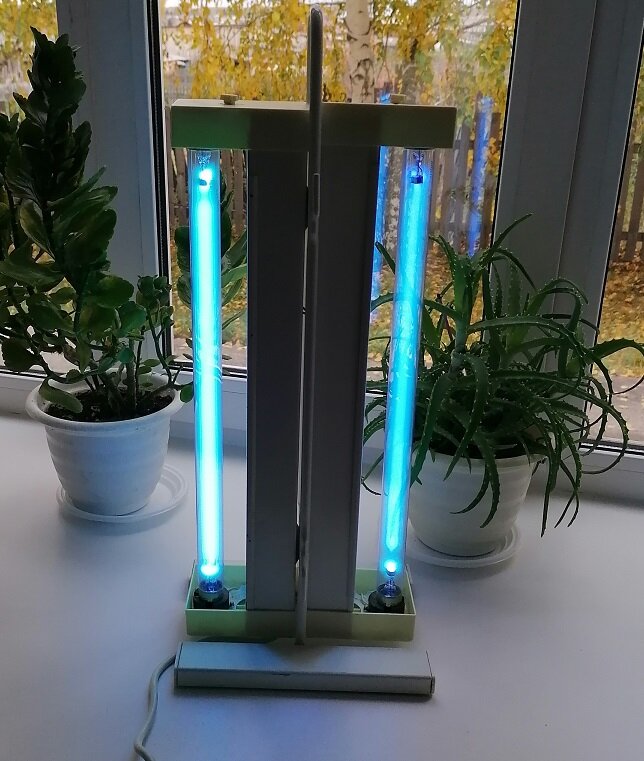 В связи с непрекращающейся эпидемией коронавируса, кварцевые лампы не теряют свою актуальность. Особенно они нужны для дезинфекции общественных помещений. Как обычно при активной эксплуатации электроприборы начинают ломаться. После постоянных перемещений лампа перестала работать. Поскольку лампы потухли сразу обе, подозрение сразу пало на вилку или питающий провод. При осмотре провода подозрения подтвердились - на изоляции обнаружилась трещина с видимой чернотой изнутри. Отрезаем провод и видим, что коричневый провод полностью отгорел. На китайской проводке такое часто бывает. Проводники у них делают из меди с примесями и к тому же часто жилы многожильного провода не цельнотянутые, а скручены короткими пучками, как шерстяная пряжа. Поскольку провод был достаточно длинным, а место, где он отгорел находилось практически у самого входа в кварцевую лампу, самым оптимальным ремонтом отрезать отгоревший кусок провода и заново прикрутить. Для этого в первую очередь нужно снять лампу, под кожу
