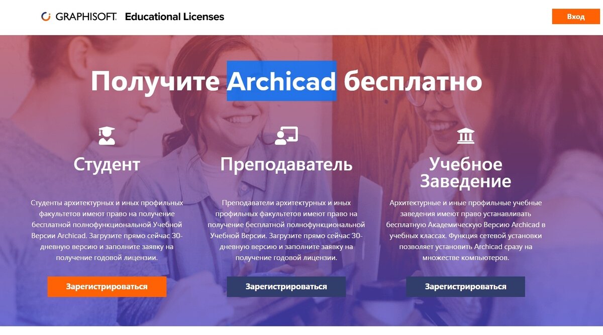 Перейди на официальный сайт Archicad и перейди на страницу "Студентам"