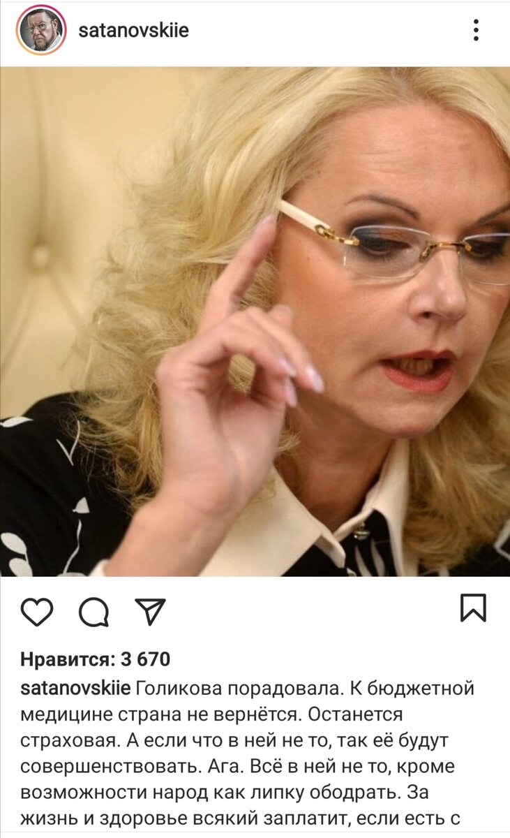 Нашел в сети интернет интересное замечание, которое сделал Сатановский в отношении планов Голиковой.