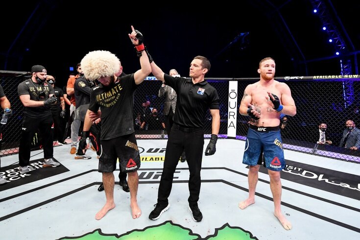 Не знаю. Многие называют первый раунд равным. Начнем с того, что Хабиб выглядел, как минимум, увереннее. Да, там Гэтжи пытался попасть джебами, своими коронками... Стоит признать, несколько раз попал. Но в глазах Хабиба не было какого-то страха или неуверенности в своих силах. Нурмагомедов был шикарно подготовлен, и он это прекрасно понимал.