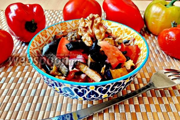 Рецепт на сайте: https://webspoon.ru/receipt/salat-iz-baklazhanov-pomidorov-i-greckikh-orekhov