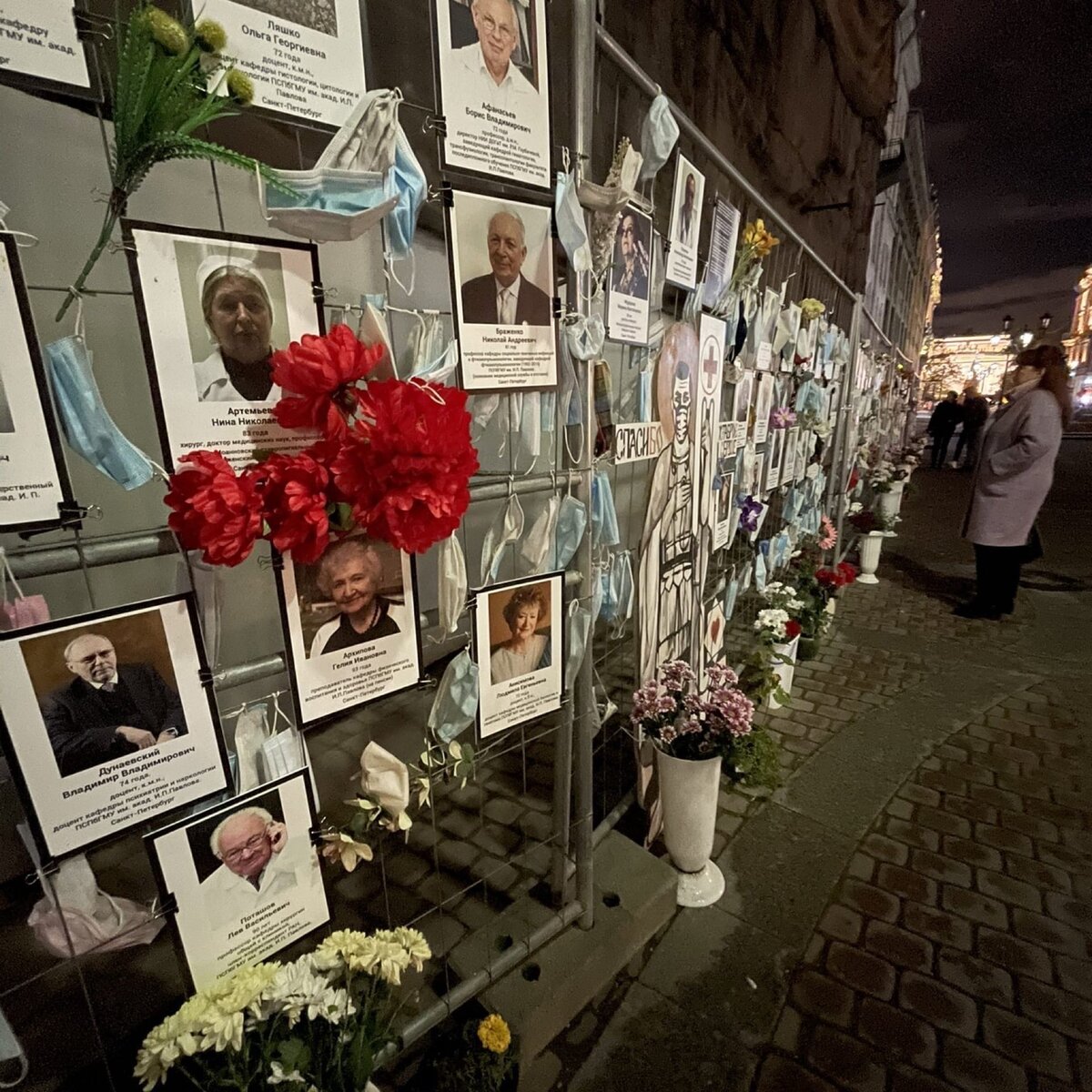 В Санкт-Петербурге есть стена с портретами медиков, погибших от коронавируса. Установили её весной, но сейчас число фотографий перевалило за сотню...