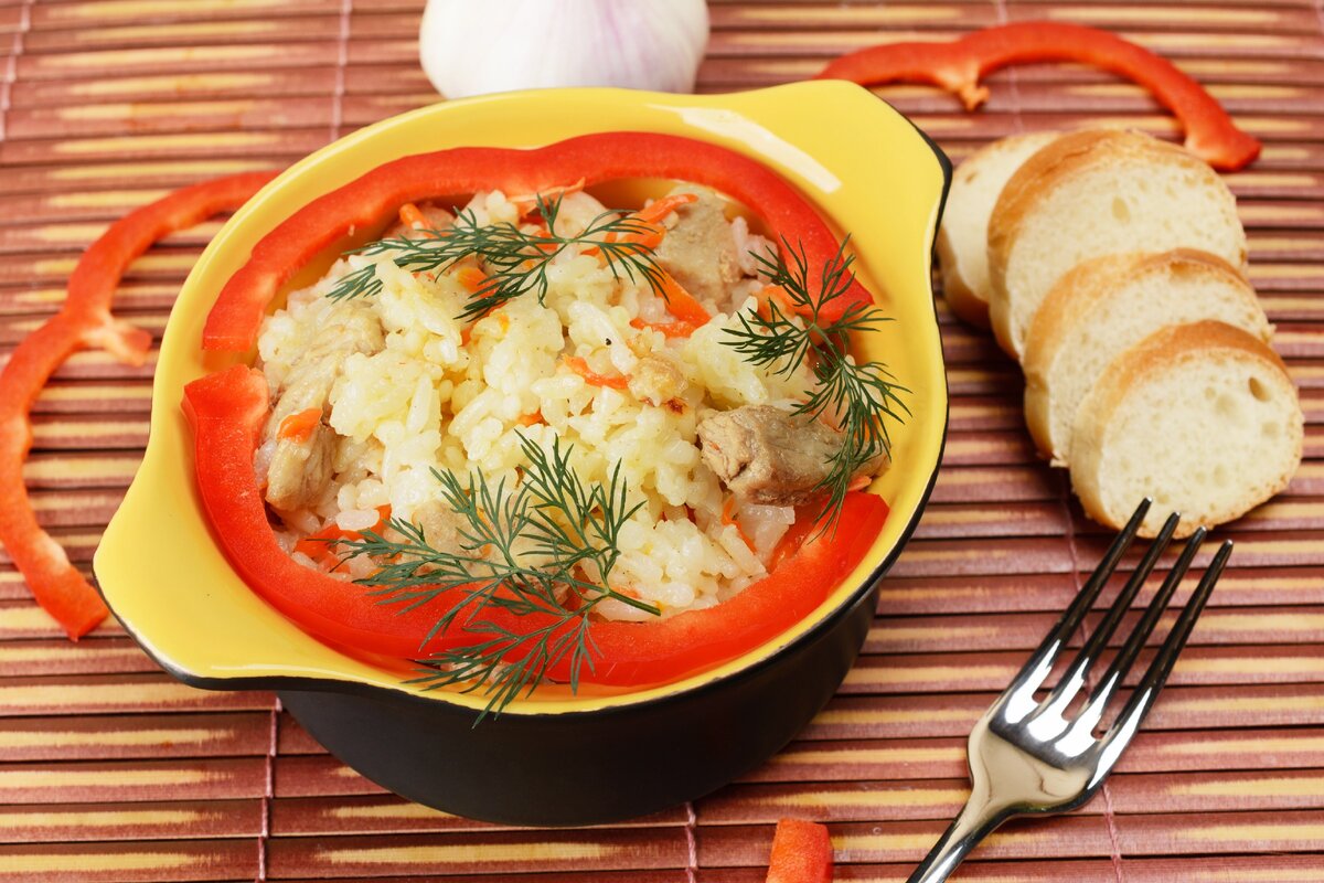 Антипригарное покрытие для плова не подходит. В нём нельзя перекаливать масло — начинает разрушаться с выделением ядовитых компонентов.