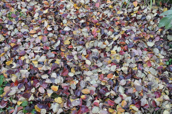 Я считаю, что листья - природный органический материал, который нужно активно использовать. И главные преимущества листьев перед другими видами мульчи - это то, что в листьях полностью отсутствуют семена сорняков и они медленно разлагаются. Разумеется, что когда я говорю "медленно", то имею в виду что обычно листьев хватает на несколько месяцев. А в результате полного разложения из листьев получается так называемый "листовой перегной" - естественное природное удобрение. Я уже написала несколько статей про сбор, использование и хранение, но сейчас хочу сделать акцент на листья сырые. Дело в том, что обычно деревья сбрасывают лист не сразу все, а постепенно в течении нескольких дней, а иной раз и недель. Исключение, пожалуй, составляют груши. У нас груша сбрасывает листья по принципу "все и сразу". Это удобно и можно их собрать сразу, пока сухо. И порой мы привозим листья из леса или парка. И у меня существует своя система "опознавательных" завязок для мешков :). Мешки с листьями своего