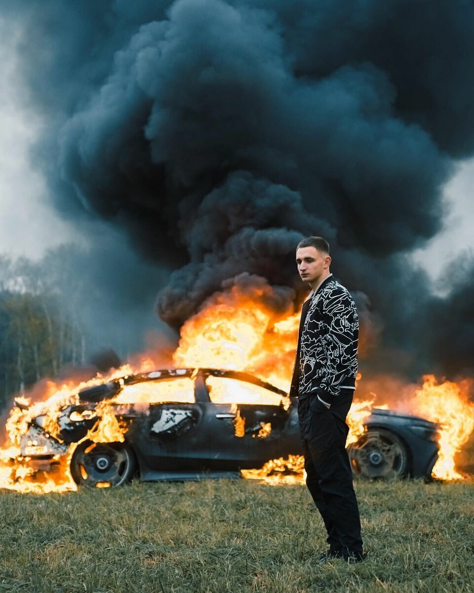 Буквально 1 день назад Михаил Литвин (блогер автомобильной тематики) выложил на свой YouTube канал (на котором почти 5 млн. подписчиков) видео, в котором он обливает свою Mersedes GT63 Coupe бензином, после чего отходит на безопасное расстояние и сжигает автомобиль.