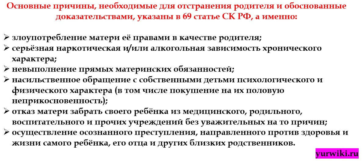 Частично это так, потому что женская психология оказывается ближе к детской. Разобраться с процедурой лишения материнских прав помогает Семейное законодательство.