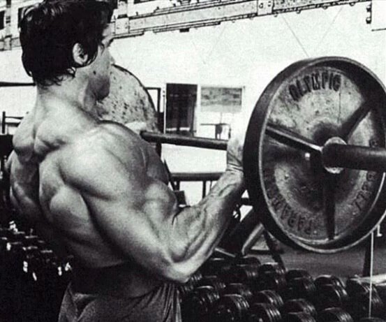«Измененные подъемы штанги имеют большое значение для набора массы. Я начинаю движение, держа штангу на уровне бедер, держа хват на ширине плеч, и привожу ее в движение небольшим толчком. Это дает мне достаточный импульс, чтобы преодолеть любые препятствия, пока я продолжаю концентрироваться. Я полностью сгибаю бицепсы, а затем возвращаю штангу в исходное положение».