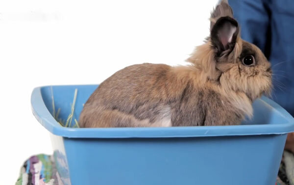 Теперь подробнее о том, как купать декоративного кролика. Действия одинаковые, если питомца моют всего или частично (намыльте только грязную часть тела). Крольчонка аккуратно опускают в тазик с водой и поливают тельце (или испачканную часть). Возможно, понадобится помощь еще одного человека, чтобы его удержать.