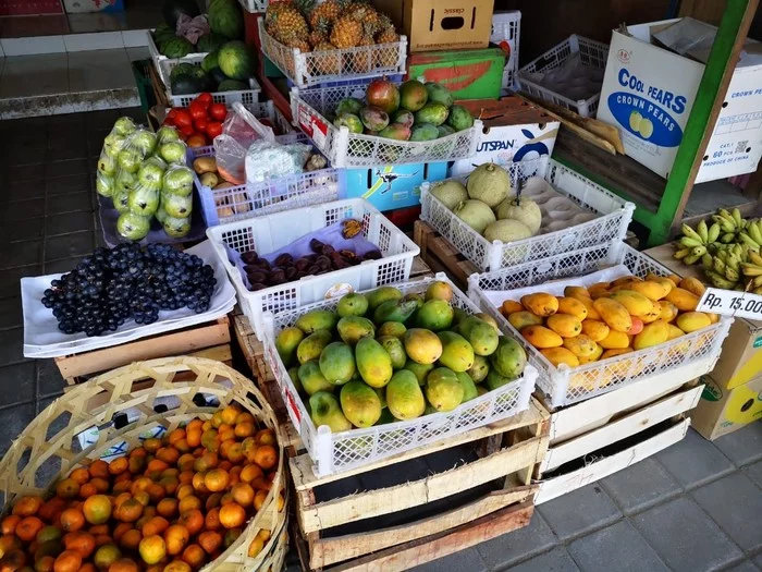 2. Очень мало фруктовых лавок на улицах. Первые 3 дня вообще ни одну не видели. А ходим мы много. Очень странно, потому что это свободная и выгодная ниша для местного бизнеса. Туристы едут в экзотическую страну, и хотят фруктов. Говорю пока про Куту. В итоге одну нашли на улице примерно тут