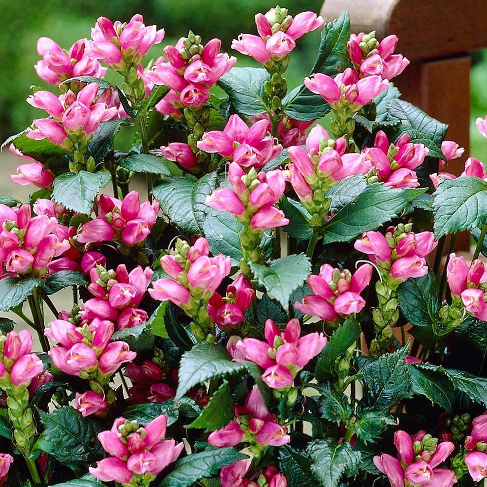 Хелоне - это многолетнее травянистое растение с тёмно-зелёными листьями и соцветиями белого, красного, пурпурного, или чаще всего розового и сиреневого оттенков.