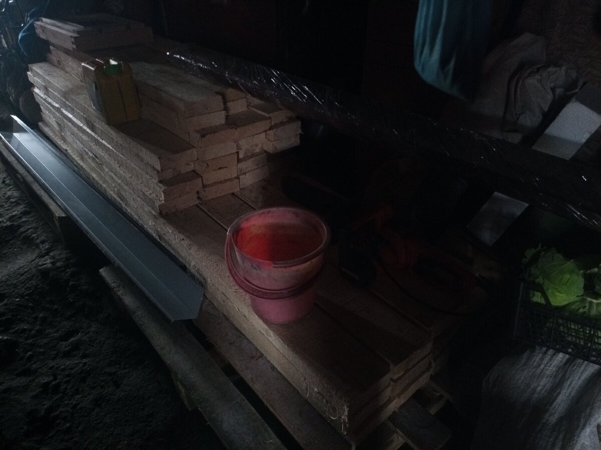 Доски для потолка длиннее, поэтому они ждут своей очереди на улице.