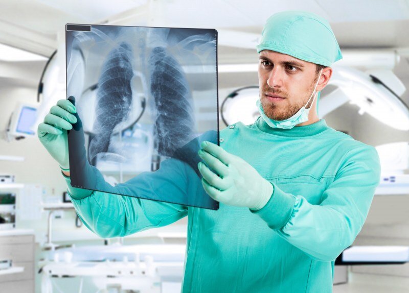 Рентгенография грудной клетки (рентгенограмма) — наиболее часто проводимое исследование для пациентов с жалобами на серьезные респираторные заболевания. То, что начинается как бронхит, может оказаться пневмонией. Снимокпозволяет врачу увидетьзатемнения.