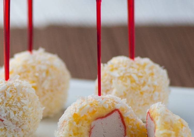 Это очень вкусно, но можно каждый раз разнообразить и улучшать, а сделать это с помощью начинки и обсыпки. Например, положить внутрь шарика кусочек крабового мяса или палочки, а сверху, вместо орех обвалять в кокосовой стружке, прям как в оригинале.