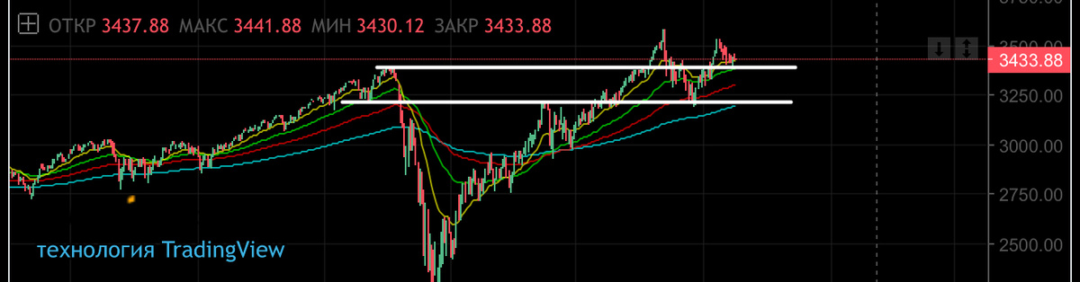 Неделя отчетов многих гигантов и при положительных отчетах есть шансы не развернуть, но удержать рынок в диапазоне 3400-3460$