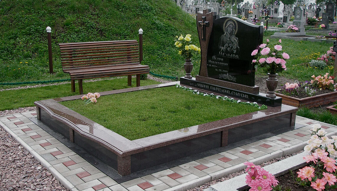 Далее организаторам похорон следует определиться с материалом изготовления могильной плиты. Самыми практичными на сегодняшний день являются надгробия, выполненные из мрамора или гранита. Первый вариант придаст могиле роскошный вид и актуален для состоятельных покупателей. Тем не менее на памятнике из цельного мрамора нельзя выгравировать растровое изображение с фотографии усопшего. Зернистая структура породы способствует аккумулированию пыли могильной плитой. Таким образом, устанавливать мраморный памятник следует лишь в том случае, если мытье надгробия будет осуществляться ежегодно. Могильная плита из гранита стоит дешевле и не требует сложного ухода. Срок эксплуатации мраморных памятников составляет около 50 лет. Гранитные монументы могут прослужить несколько веков.