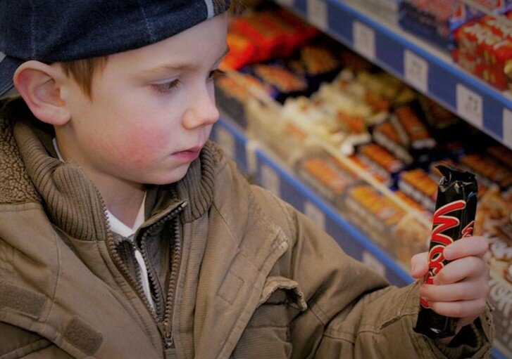 У меня у самой четверо, был случай со старшим сыном, ему лет шесть было. Мы переехали в Москву, до этого жили в Подмосковье, в частном доме. Продукты покупали на местном рынке, а там всё ЗА продавцом, прилавок пустой и высокий. А в супермаркетах Москвы все вкусняшки и шоколадки внизу, такое искушение для детей! Для непривычного к этому ребёнка.