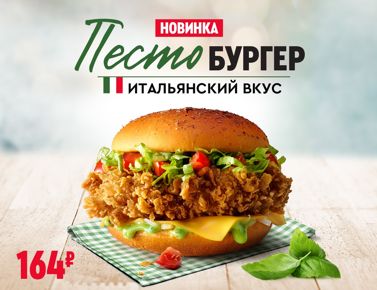 26 октября 2020 года в сети ресторанов KFC появилась новинка — «Песто Бургер».