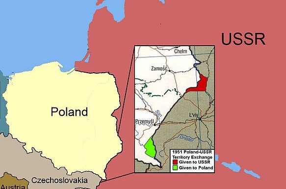 В 1951 году произошел крупнейший в истории польско-советских отношений мирный обмен государственными территориями. Договор, узаконивший этот факт, был подписан в Москве 15 февраля. Площади территорий, подлежавших обмену, были одинаковы. Каждая равнялась 480 кв. км.