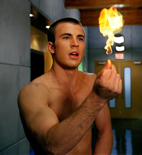 Как наверняка знают все поклонники Marvel, до появления в КВМ в роли Капитана Америка Крис Эванс сыграл другого известного марвеловского героя. Это был Джонни Шторм, он же Человек-факел, из «Фантастической четверки». И это первый персонаж комиксов, воплощенный Эвансом на экране.