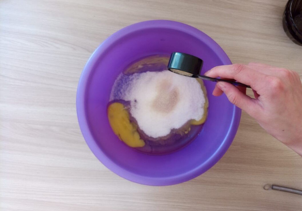 Для начала смешаем яйца, сахар и ванильный сахар(ванилин)