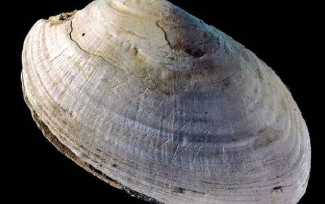 Как ни странно, но древнейшим образцом абстрактного искусства является вот эта раковина моллюска с острова Ява, Индонезия. Команда ученых из Лейденского университета в Голландии пришла к выводу, что раковине не меньше полумиллиона лет. Знаки на ее поверхности были вырезаны в форме зигзагообразных фигур, а резцом скорее всего послужили акульи зубы, обнаруженные в том же месте, что и главная находка.