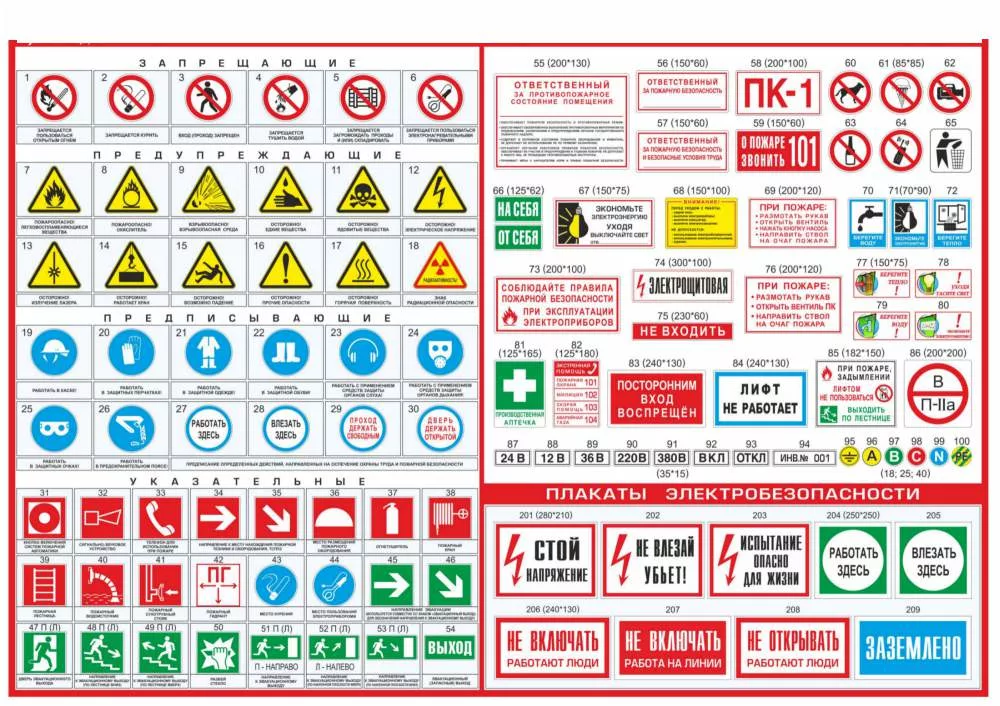 Знаки безопасности – специальные изображения, выполненные яркими сигнальными цветами. Могут иметь различную геометрическую форму, дополняться уточняющими надписями. Указатели используются для предупреждения о возможной угрозе возникновения аварийных ситуаций. Также они необходимы для регламентирования действий в целях предотвращения опасности или ее преодоления, устранения последствий. Кроме этого ЗБ размещаются для обозначения сигнальных устройств, пожарного инвентаря, медицинских средств, снижающих степень воздействия вредных факторов. Характеристики и правила применения знаков безопасности регулирует ГОСТ 12.4.026-2015. Выполнение требований стандарта на производствах, в административных и жилых зданиях уменьшает риск травмирования населения и размеры материального ущерба по итогам ЧС.
