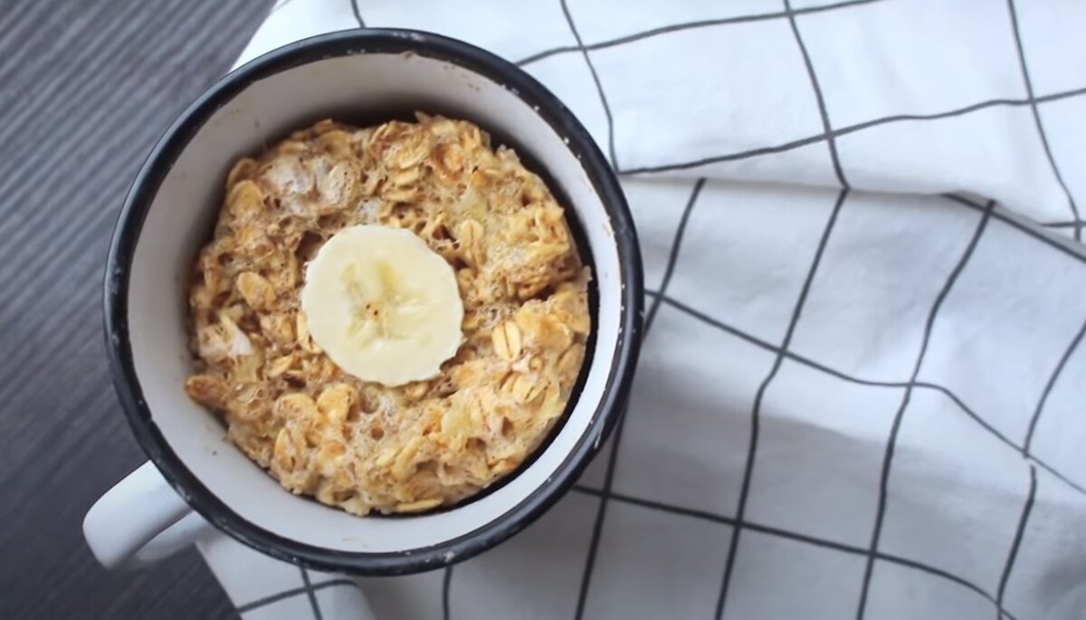- Теперь нам осталось только отправить нашу чашку в микроволновку на 2 минуты. Собственно и всё, наша запеченная овсянка в стакане готова.
