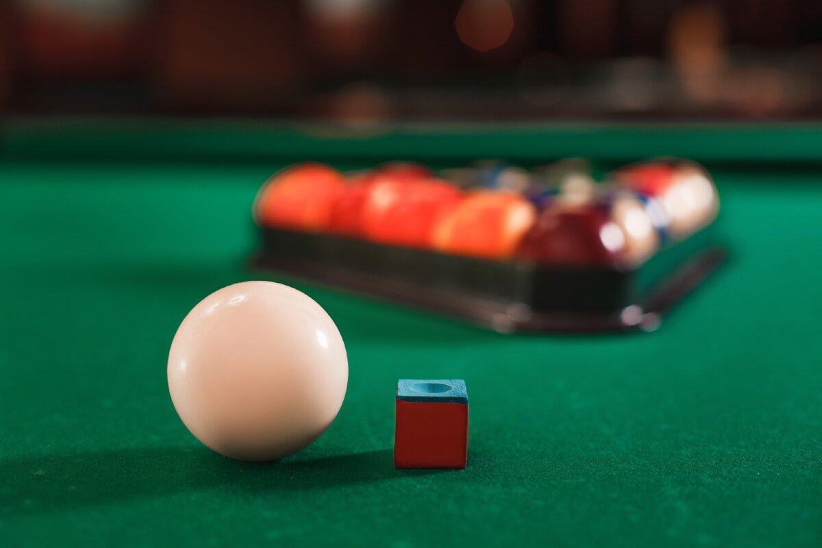 Как же играют в данный вид бильярда сейчас? Необходимо положить на бильярдный стол треугольник и поместить в него 15 шариков, кроме одного, шестнадцатого, который ждет первого удара. Этот шар – биток – кладут в заранее отведенное место на столе. Цвет стола преимущественно зеленый.