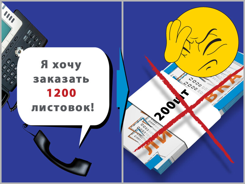 Про забывчивого менеджера мы уже писали. Если ваши сроки горят, а мы не исполнили заказ, потому что у нас закончилась бумага — тоже претензия к нам. Исключение: клиенту тираж нужен срочно, но предоставить подходящий для печати макет в срок он не может.