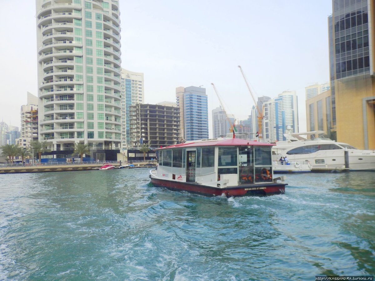 Торговый центр Марина Молл был напротив нашего дома, на другой стороне залива: Новогодний шоппинг в Эмиратах. Марина Молл Дубай.Пешеходная прогулка до торгового центра вдоль яхтенной пристани занимает около получаса.Иногда в конце дня даже это небольшое расстояние может показаться значительным.Не секрет, что на улицах в Арабских Эмиратах довольно жарко, поэтому передвигаться здесь часто приходится на общественном транспорте или на такси.Дубай – прибрежный город, здесь с давних времен принято передвигаться по воде. В этом городе есть метро, ходят автобусы и трамваи, есть и водный автобус. Передвигаться по воде гораздо интереснее, а в жару еще и приятнее, чем на наземном транспорте.Water Bus — бюджетный и комфортный транспорт, он пересекает Марину за десять минут, платить за проезд можно транспортной картой. В отличие от традиционной лодки дау в водном автобусе комфортный салон с кондиционером.В прохладном водном трамвайчике можно отдохнуть, расслабиться и насладиться прекрасными видами.Существует несколько водных маршрутов. Нам понравился самый простой — тот, что соединяет два самых посещаемых места в нашем районе — торговый центр Марина Молл и противоположную сторону водоема — набережную Marina Walk.Билеты на водный трамвайчик продаются в киоске на набережной перед торговым центром Марина Молл.