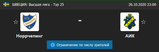 Для составления прогноза на матч Норрчёпинг - АИК, запланированный на 26 октября 2020, необходимо учесть ряд важных факторов, которые могут повлиять на исход встречи. Норрчёпинг занимает 3 место в турнирной таблице, их соперники - команда АИК, расположилась на 11 строчке. В текущем сезоне турнира Швеция. Высшая лига команда Норрчёпинг сыграла 24 матча, в которых одержала 11 побед, 6