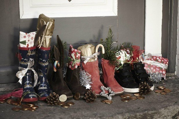 На утро оба сапога были набиты конфетами, мандаринами и какими-то вкусняшками.