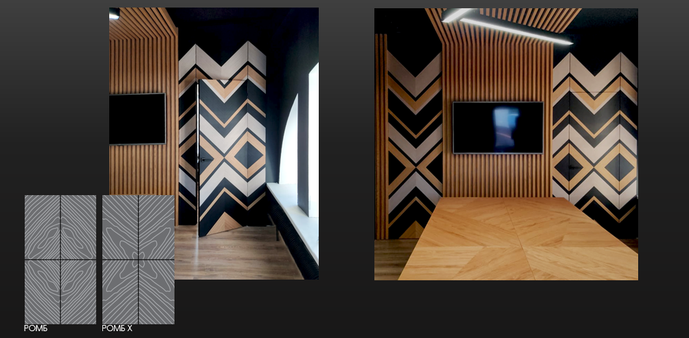 В дополнение к пяти вариантам расположения шпона в «рубашке» (книжное, скользящее, перевернутое, зеркальное, смешанное), которые хорошо известны нашим клиентам, в этом сезоне мы предлагаем новый фантазийный вариант в двух исполнениях РОМБ и РОМБ Х.