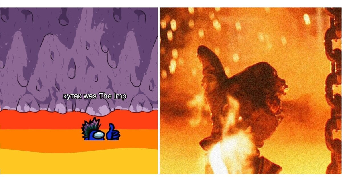 Самые очевидные, это "Робот Валли" и шляпа из луни тюнз. Все они связаны с аксессуарами, которые есть в игре. Робот Валли выступает в роли питомца, который постоянно бегает за нами. Если impostor нас убьет, то робот испугается и огорчится. Такая анимация есть у всех питомцев в игре. Лично я этот мультик не смотрел, но робота узнал сразу.7: Терминатор 2 карта polus Амонг ас Вторая отсылка на карте полус: термиратор 2. После голосования, мы сбрасываем impostor в лаву. Если мы сбросим невиновного, тогда ничего не произойдет. Но если в лаву будет выброшен impostor, тогда он покажет рукой жест "класс". Этот жест показал терминатор во 2 части.