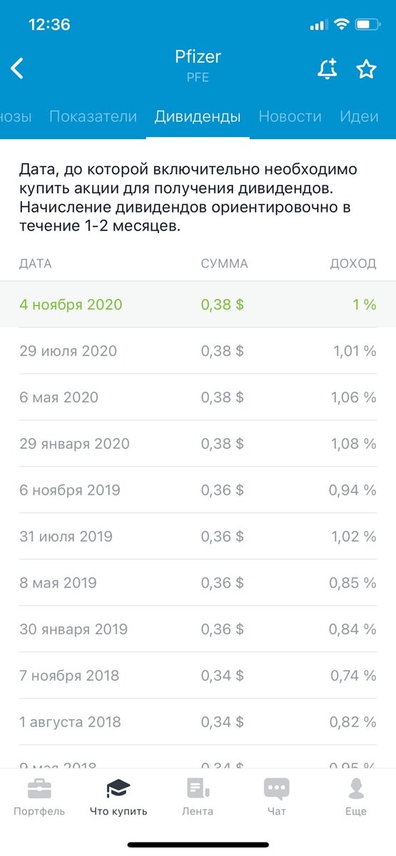 Американская фармацевтическая компания, одна из крупнейших в мире, является производителем известных лекарств: Виагра, Дифлюкан, Липитор и др. Компания была основана в 1849 году. В настоящее время оборот составляет $50млрд./год. Выплата дивидендов берет отчет с марта 1978 года. На сегодняшний день Pfizer INC является одной из старейших компаний, которые платят дивиденды. Выплата дивидендов происходит ежеквартально, среднегодовая дивидендная доходность составляет ~4%