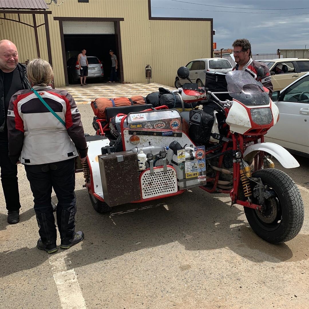 В Калмыкии встретили путешественников из Германии на мотоциклах которые они сами собрали .