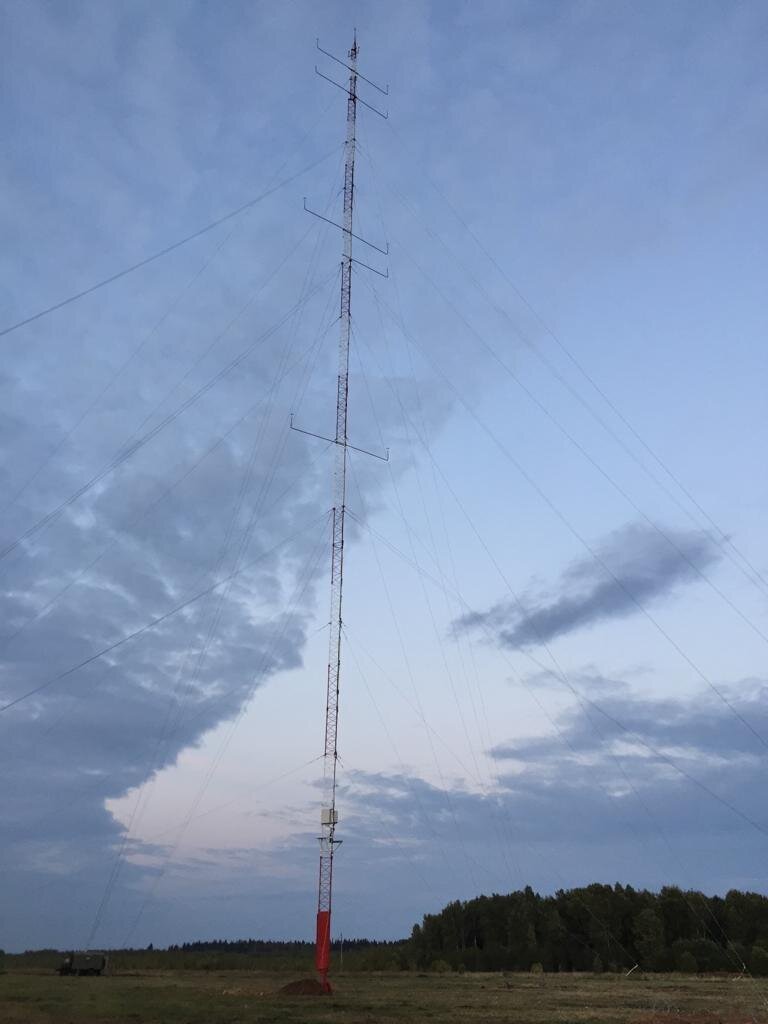 монтаж башен метеоразведки (для замеров скорости ветра по году). Обычная такая красно-белая высокая конструкция, которую используют военные, телефонные и интернет компании.